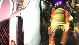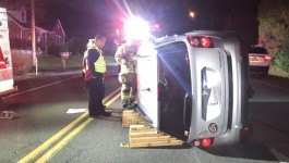 Company 95 was dispatched to the area of the South bound Rt 100 ramp at Montgomery Avenue at 1957 hours for a report of a two vehicle crash with one vehicle on it’s side. On arrival crews stabilized the vehicle, placed protective covers over the occupant and removed the windshield to extricate the occupant. the occupant was turned over to Boyertown Ambulance who evaluated the patient. Crews assisted Faust Towing with removal of the vehicle.