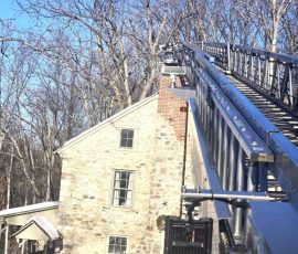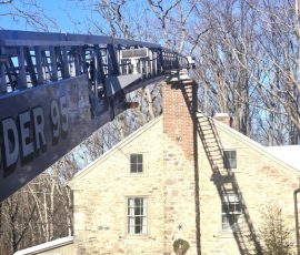 01/30/2026 – At 14:49 hours Ladder 95 was dispatched on the initial structure assignment to assist Oley Fire Company, Station 5, with a possible structure fire caller reported the house has an odor of plastic burning and the residence is filling up with smoke. Rescue 95 also made the response as an engine to cover an initial unit. Engine 5, under the command of Assistant 5, arrived first due and reported a haze of smoke in the residence. The report also was a very long snow covered driveway and all additional units to stage on the main roadway. Upon arrival of Ladder 95 the request was made to attempt for the ladder to enter the driveway to gain access to the roof of the residence. Command reported that the incident was a chimney fire. Ladder 95 navigated the long narrow driveway behind Engine 5 and upon arrival setup the main to access the chimney. Crews assisted in checking the chimney and it was determined that there was a blockage causing the smoke condition. Personnel assisted with removing enough of the clogged flue ashes and debris to assure the fire was extinguished. Command determined there was no longer fire nor smoke from the chimney and terminated operations. The company was released and available at 15:57 hours.