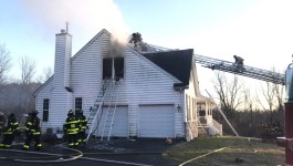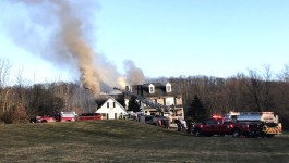 Company 95 was dispatched at 1638 hours to assist Company 19 Earl Township with a structure fire at 19 Club Road reporting fire showing and residence is evacuated. On arrival Chief 19 ordered Engine 19 and Ladder 95 up the driveway to the structure and Chief 49 to establish water supply at the end of the driveway. A 5 inch line was established between Engine 49 and Engine 19 and a portable tank was set up in front of Engine 49 to allow Tankers to dump their water and go refill at the fill site on Marburger Road. Chief 19 called for a 2nd alarm for manpower due to the size of the structure and the fact that most of the structure was involved. Company 95 assisted EMS from Oley and Bally with a K-9 oxygen mask for one of the dogs from the residence that suffered from smoke inhalation. The mask were provided to BAF&R by Patt Veterinary Hospital for this purpose.