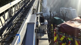 03/10/2025 – At 1642 hours the Structure Assignment was dispatched to assist Station 19, Earl Township Fire Company, with a house reported to be on fire in the unit block of Long Lane Road in Earl Township. Shortly after dispatch it was reported that two residents might still be in the structure and the assignment was upgraded to possible entrapment. Ladder 95, Engine 95-1, and Tanker 95 were all requested and made the response. Engine 19 arrived first in and Assistant 19 reported a working fire with fire showing on the A-B corner of the structure and also in a detached garage and Deputy 19 assuming command. Ladder 95 arrived as first due aerial and positioned at the A-B corner of the structure where the bulk of the fire was showing and setup the main to the roof and personnel accessed and started ventilation. Additional personnel also setup numerous ground ladders and assisted with fire attack.