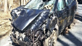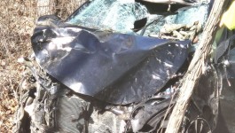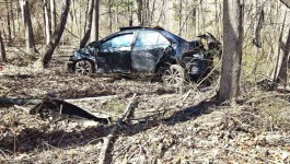 Engine 95-1 and Rescue 95 arrived to find a vehicle far off the roadway into the woods with several trees down and also leaning over the vehicle. Personnel checked to assure no other occupants and secured the area. The towing company arrived and personnel assisted with the task of getting the vehicle removed to be towed from the scene.