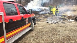 03/04/2025 – At 1057 hours Brush 95-1 and Engine 95-1 were requested to assist at a brush fire to the rear of a commercial property in the 7600 block of Boyertown Pike (Route 562) in Amity Township. Engine 49 with Captain 49 (Amity Fire Co) arrived and reported a large pile of debris burning with extension into the wooded area. Brush 95-1 arrived as the first in brush apparatus and began an attack on the spreading fire in the wooded area. Personnel used several forestry handlines from Brush 95-1 to stop the progress of the fire. Personnel also assisted Captain 49 with lines from Engine 49 to attack the large debris pile burning.
