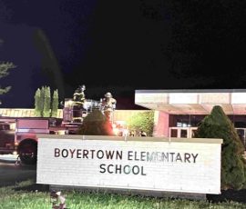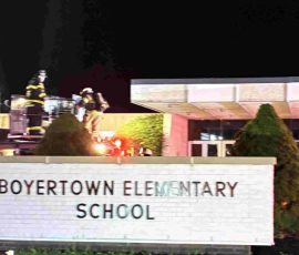 Company 95 was dispatched at 0140 hours for an automatic fire alarm at the Boyertown Elementary School on Second Street. Crews arrived on location and found a smoke condition in the hallways and tracked it down to room 146 where there was a fire on the wall above the heating unit where a bulletin board caught fire. The call was upgraded to a structure fire bringing in mutual aid from Eastern Berks Fire, Earl Township Fire Co., Gilbertsville Fire & Rescue and Boyertown Ambulance. Crews extinguished the fire and began extensive overhaul with thermal cameras and smoke ejector fans. Administration from the School District were notified and the building custodian arrived on location as well as the Facilities Director and the Superintendent. The school district contacted Berks Fire & Water restoration to clean the building from smoke and water damage. The Colebrookdale Fire Marshall and the State Police Fire Marshall are investigating the cause of the fire. The building was turned over to the School District at 0530 hours.