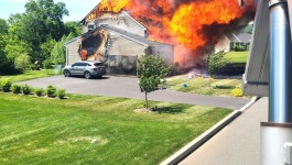 06-01-2024 – As personnel were manning the parking lots and also the food tent at our fundraising event at the Boyertown Community Fundays, at 1403 hours the structure assignment went out for a reported house on fire from the rear deck on Avalon Circle in Washington Township to assist Eastern Berks Fire Department (Company 97). Ladder 95, Engine 95, and Tanker 95 were all due on the initial assignment. Ladder 95 went enroute from the standby at the park as other personnel responded from the park to the station to assure Engine and Tanker 95 also responded. Chief 97 reported heavy smoke during the response and requested a 2nd alarm dispatch at 1407 hours. This added Engine 95-1 on the incident, but that unit and some personnel were attending the pump operator/EVOC class so Rescue 95 responded in place of Engine 95-1 from the park.