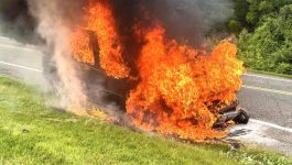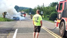 07/29/2025 – at 0737 hours Station 95 was dispatched to assist Montgomery County Station 79, Upper Pottsgrove Fire Company, with a vehicle fire on Farmington Ave and West Moyer Road. Engine 95-1 made the response with a crew of four and arrived at 0745 hours simultaneously with Montgomery County Engine 79. Personnel pulled the front bumper line and initiated an attack on the well involved vehicle. Personnel from Station 79 also pulled a line and began assisting when they received a call for smoke in the area and a possible structure fire. They quickly disconnected and responded to that incident as Engine 95-1 remained to finish extinguishment of the vehicle fire. The other incident turned out to be smoke from the vehicle fire and Engine 79 returned to the scene. After the fire was extinguished the company was released and made available at 0816 hours. It is always an honor to provide mutual aid to our neighboring departments as they have to assist us. Photos courtesy of Upper Pottsgrove Fire Marshall Charles Ritschard and BAF&R Secretary Randy Graber.