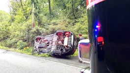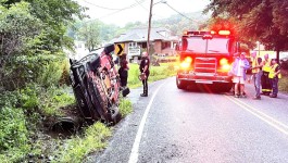 Company 95 was dispatched to a vehicle rollover on Ben Franklin Highway in Douglass Township and were recalled enroute. Engine 95-1 was turning around at Gift when they observed traffic stopped on Farmington Avenue and saw a vehicle on it’s side. They blocked the roadway and checked for injuries and called for Boyertown Ambulance who arrived and evaluated the occupants of the vehicle. Eastern Berks Regional Police responded as the crash occurred on the line between Colebrookdale and Douglass and they handled the crash until Douglass Police were available from the crash on Ben Franklin Highway and it was determined to be in Douglass Township. The vehicle was removed from the scene by AAA vendor Jaybird Towing. When the vehicle was up-righted the oil pan struck the roadway and spilled most of the engine oil on the edge of the roadway and the edge of the small stream. Absorbent pads and a boom were immediately used to keep the oil out of the stream. Douglass EMA Coordinator was notified of the spill.